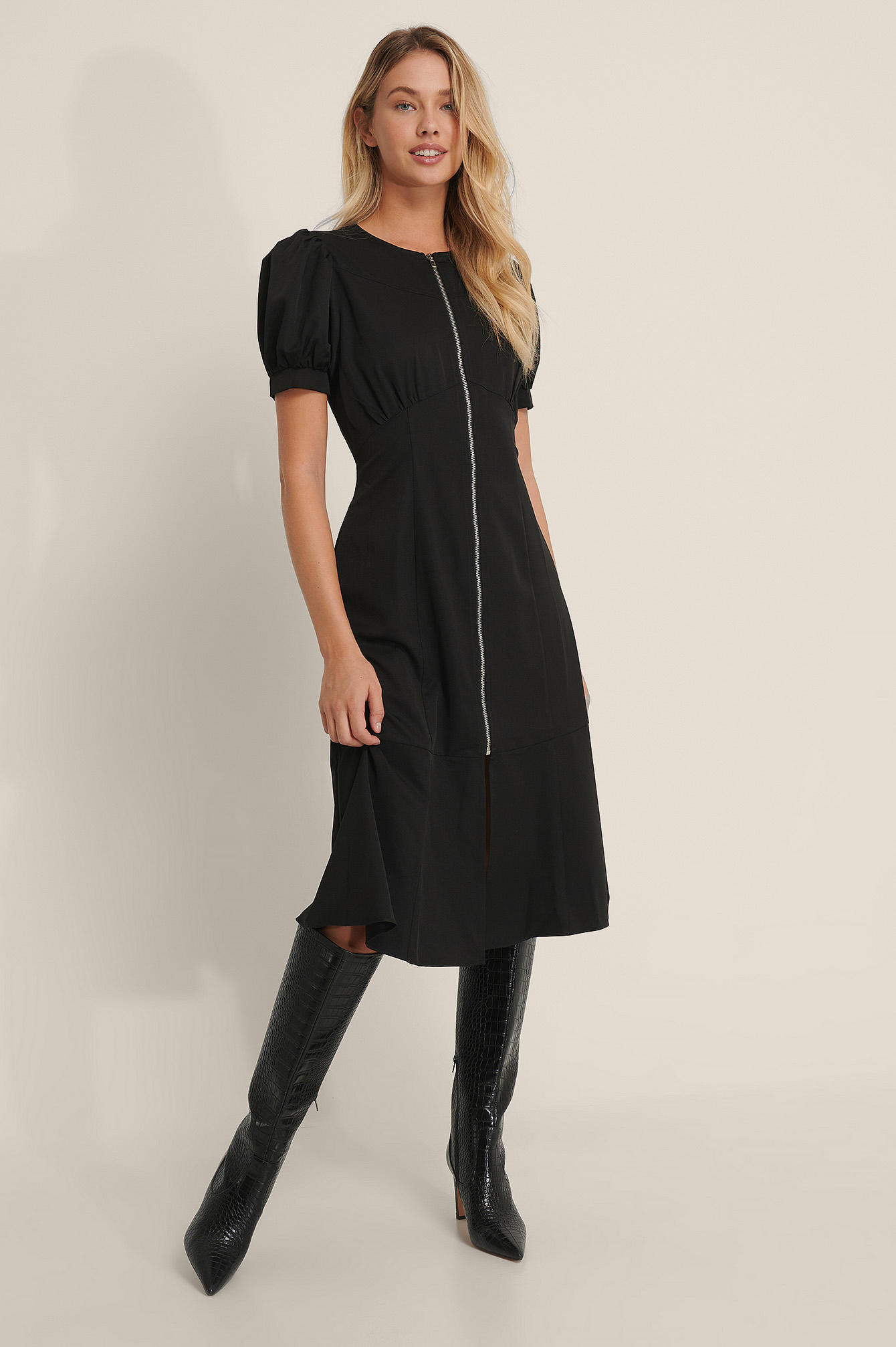 - Front zipper midi dress