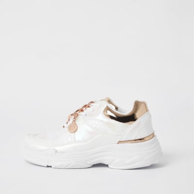 Girls chunky sole trainers Outlet, Girls white iridescent chunky trainers Outlet
