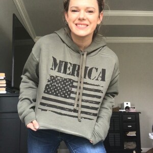Merica cropped hoodie Outlet, Merica American Flag Military Cropped Outlet
