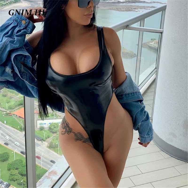 - Black leather one piece swimsuit outlet
