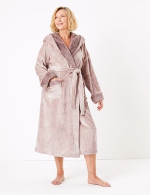 Mink dressing gown Outlet, Fleece Faux Fur Trim Long Dressing Gown Outlet