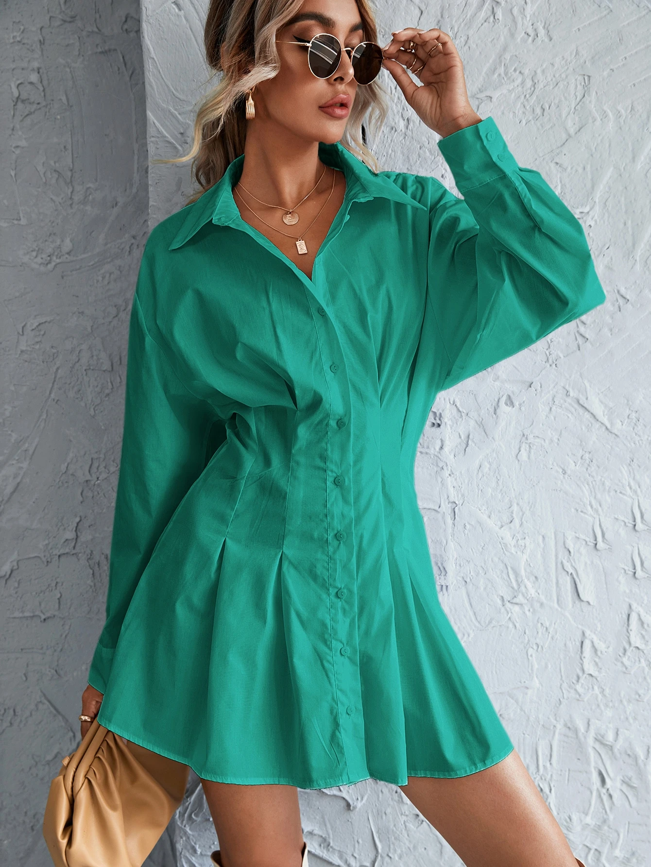 - Button front shirred back shirt dress sale