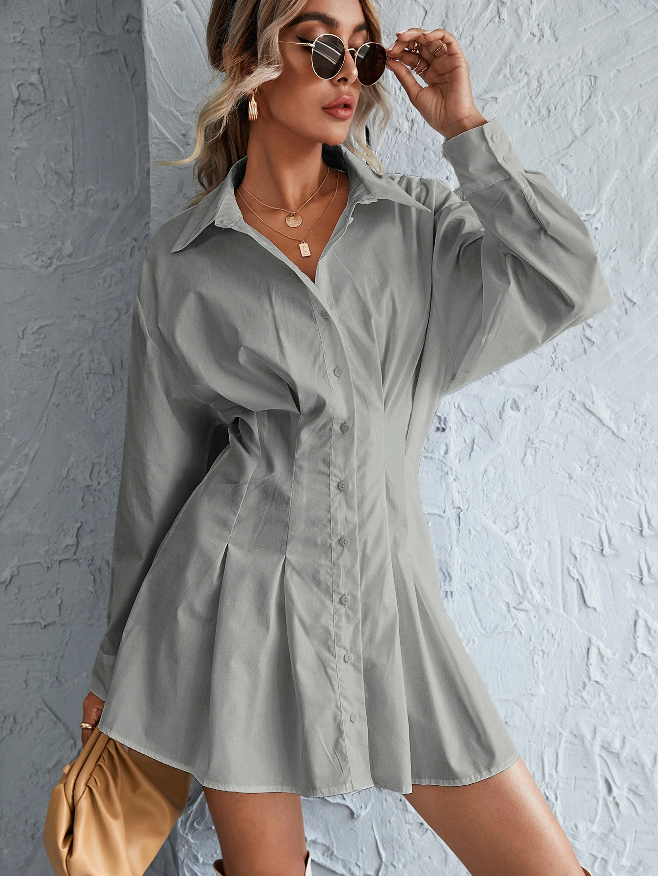 - Button front shirred back shirt dress sale online
