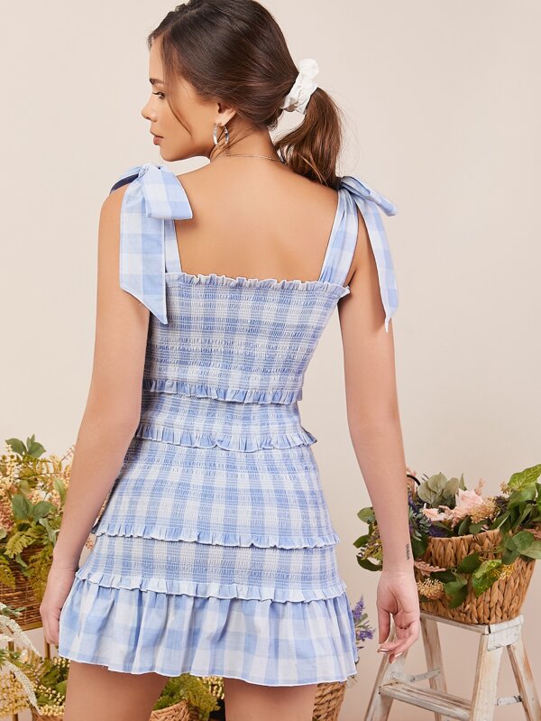 - Shopping Tie strap smocked mini dress