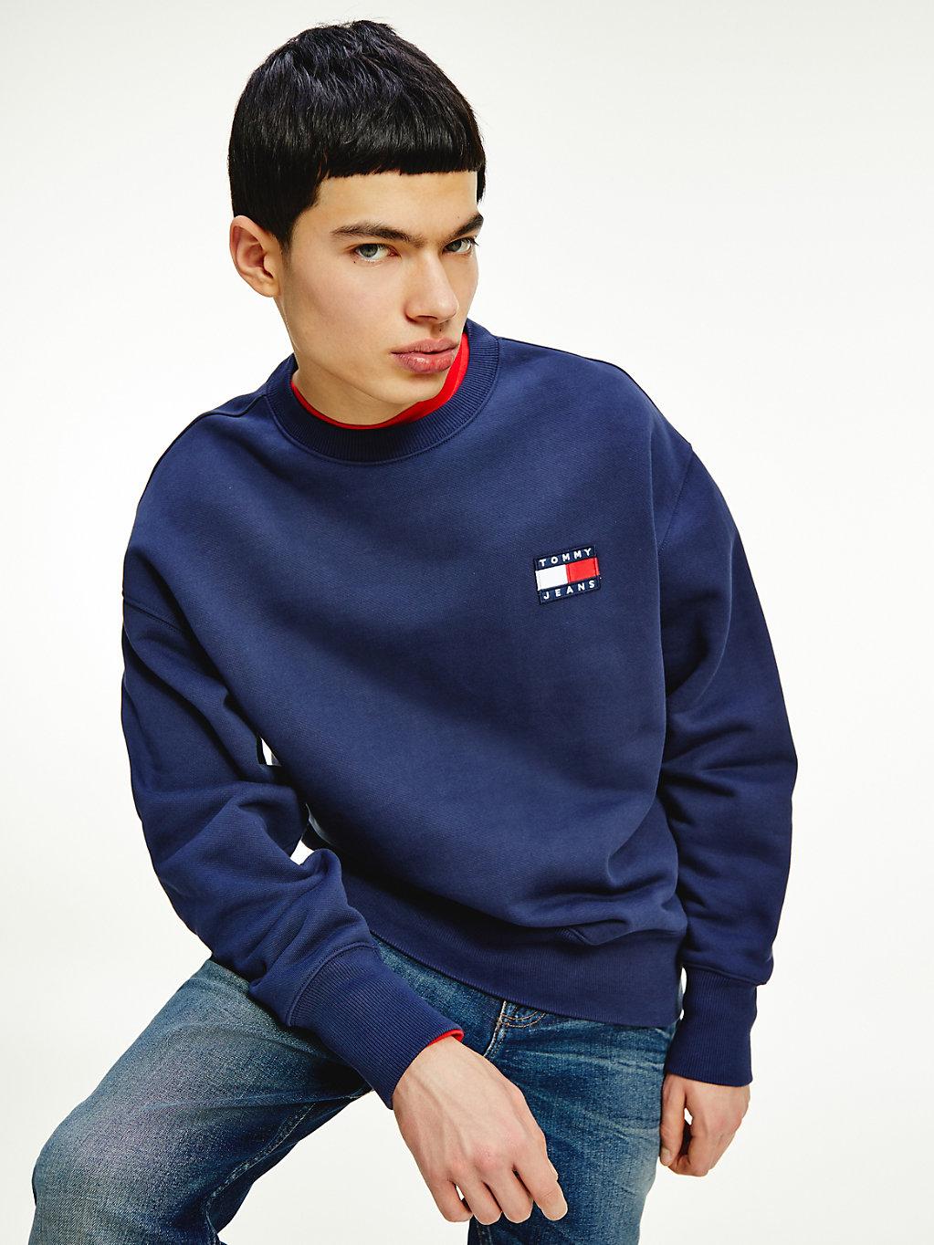 Organic cotton fleece badge logo sweatshirt Outlet, Tommy Badge Organic Cotton Sweatshirt Outlet
