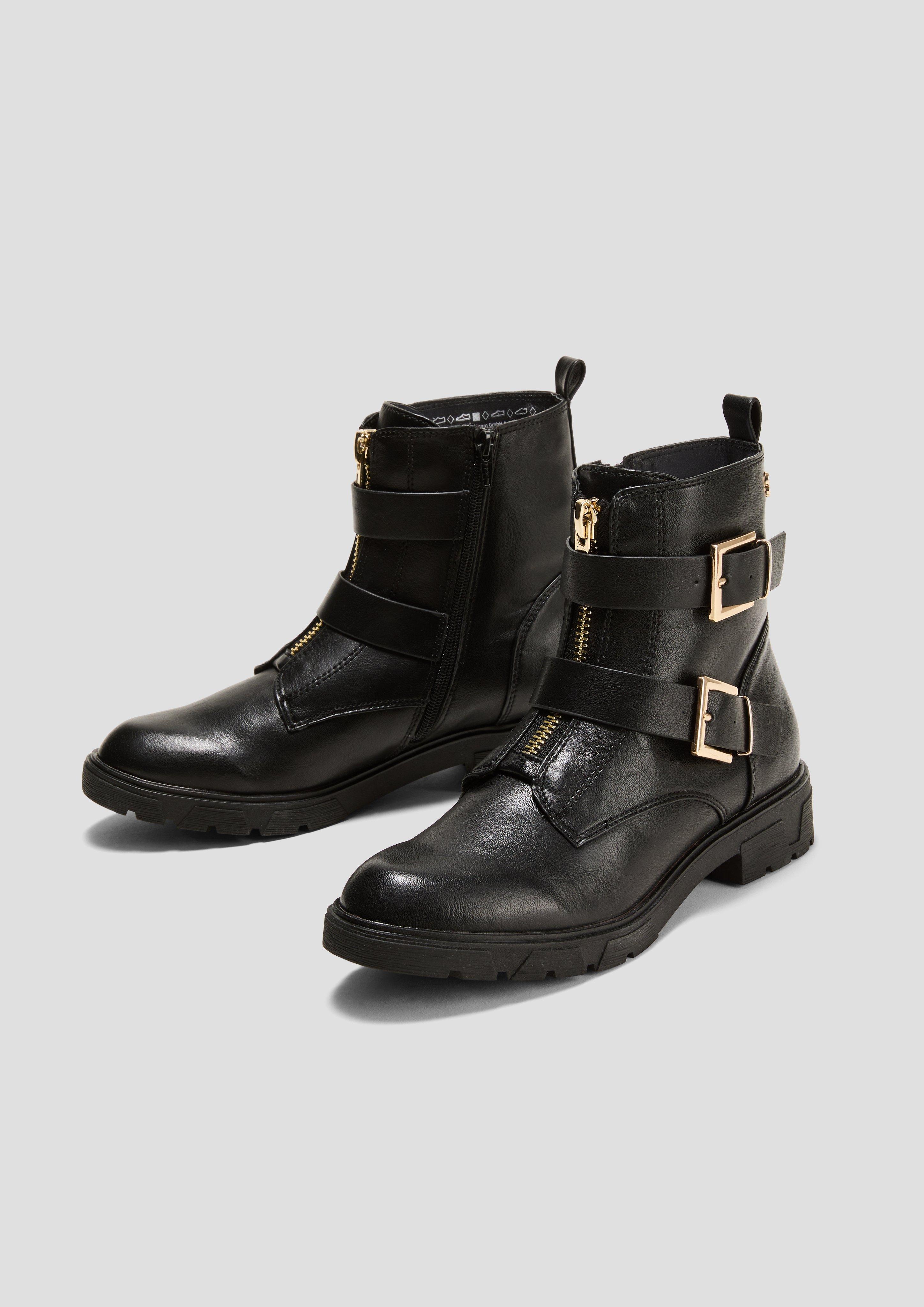 Lederstiefel mit schnallen Outlet, Lederoptik-Stiefel mit Schnallen-Detail - schwarz | s.Oliver Outlet