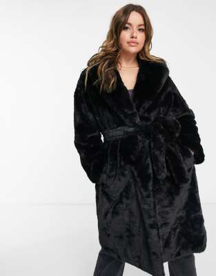 New look black belted coat Outlet, New Look Curve longline belted faux fur Outlet