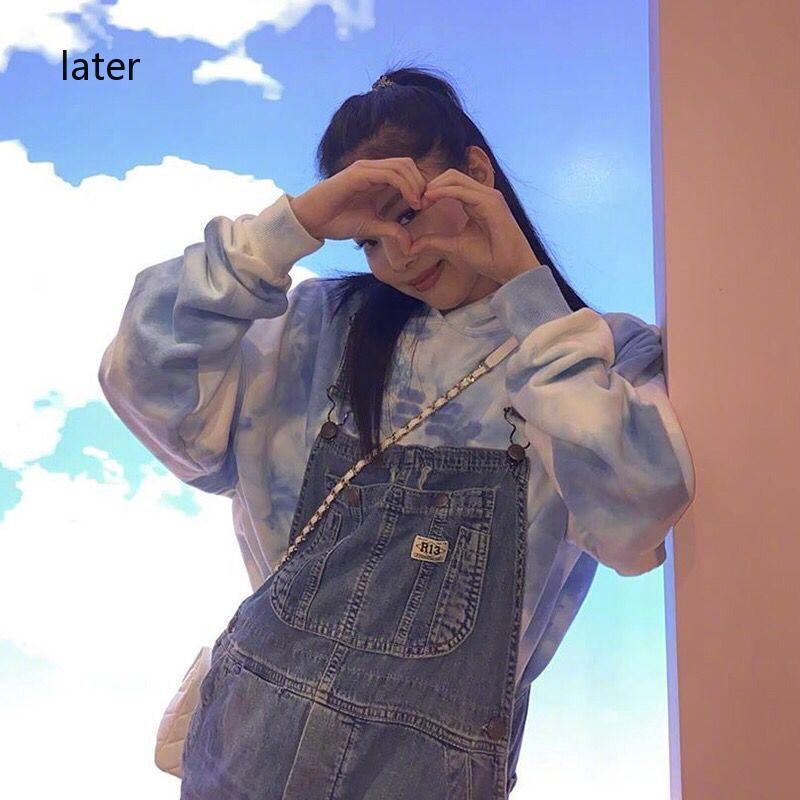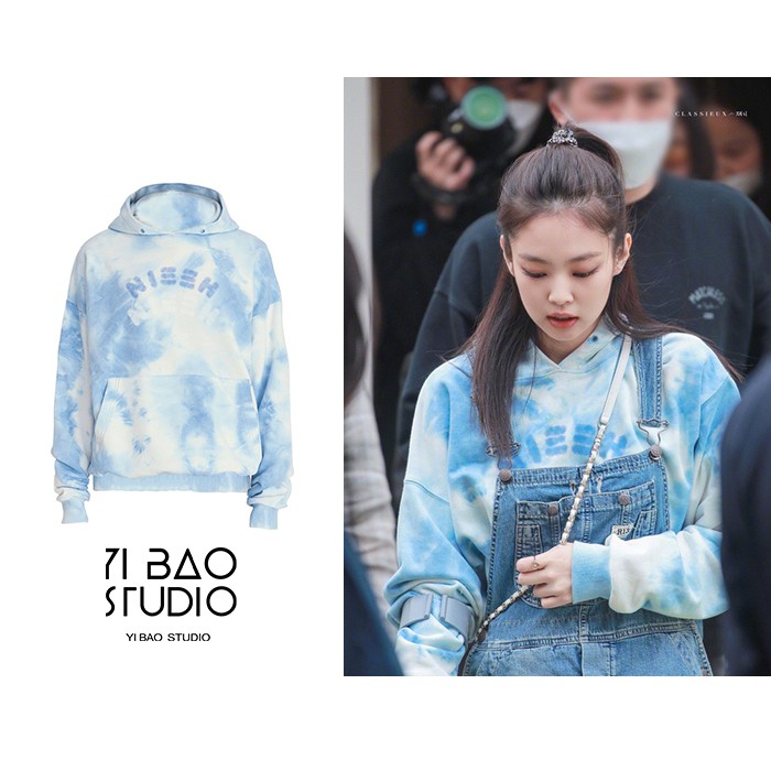 Jennie tie dye hoodie Outlet, blackpink jennie金智妮同款扎染天空藍寬 Outlet