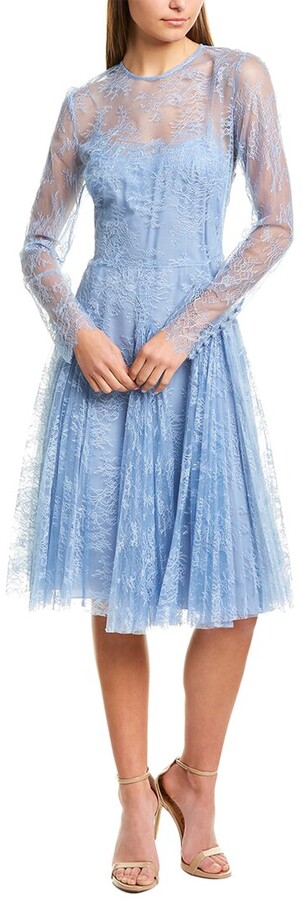 Lela rose blue lace dress Outlet, Lela Rose Fluted Corded Lace Dress In Outlet