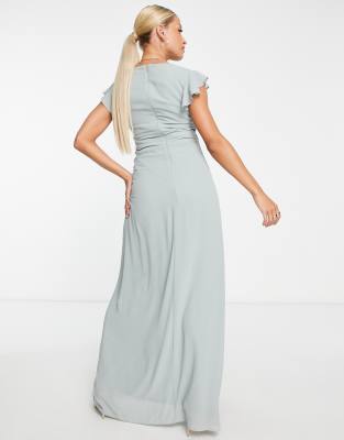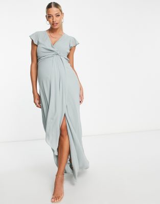 Umstandsmode brautjungfer Outlet, TFNC – Umstandsmode – Salbeigrünes Brautjungfer-Maxikleid mit Flatterärmeln und Rüschendetails Outlet