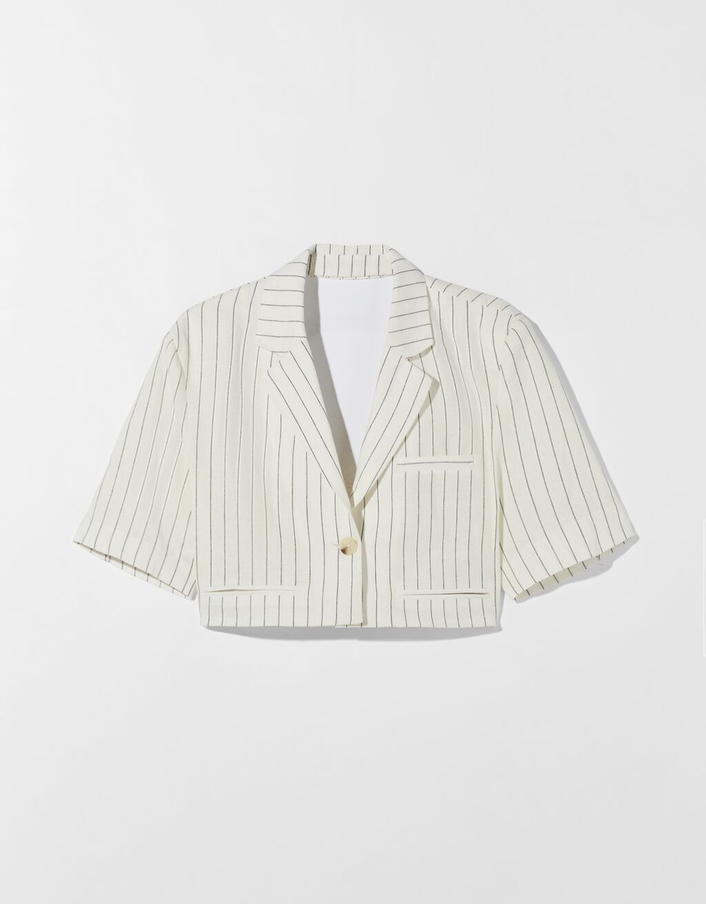 Striped cropped blazer bershka Outlet, Striped short sleeve cropped blazer Outlet