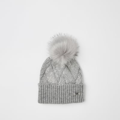 - Grey diamante bobble hat outlet