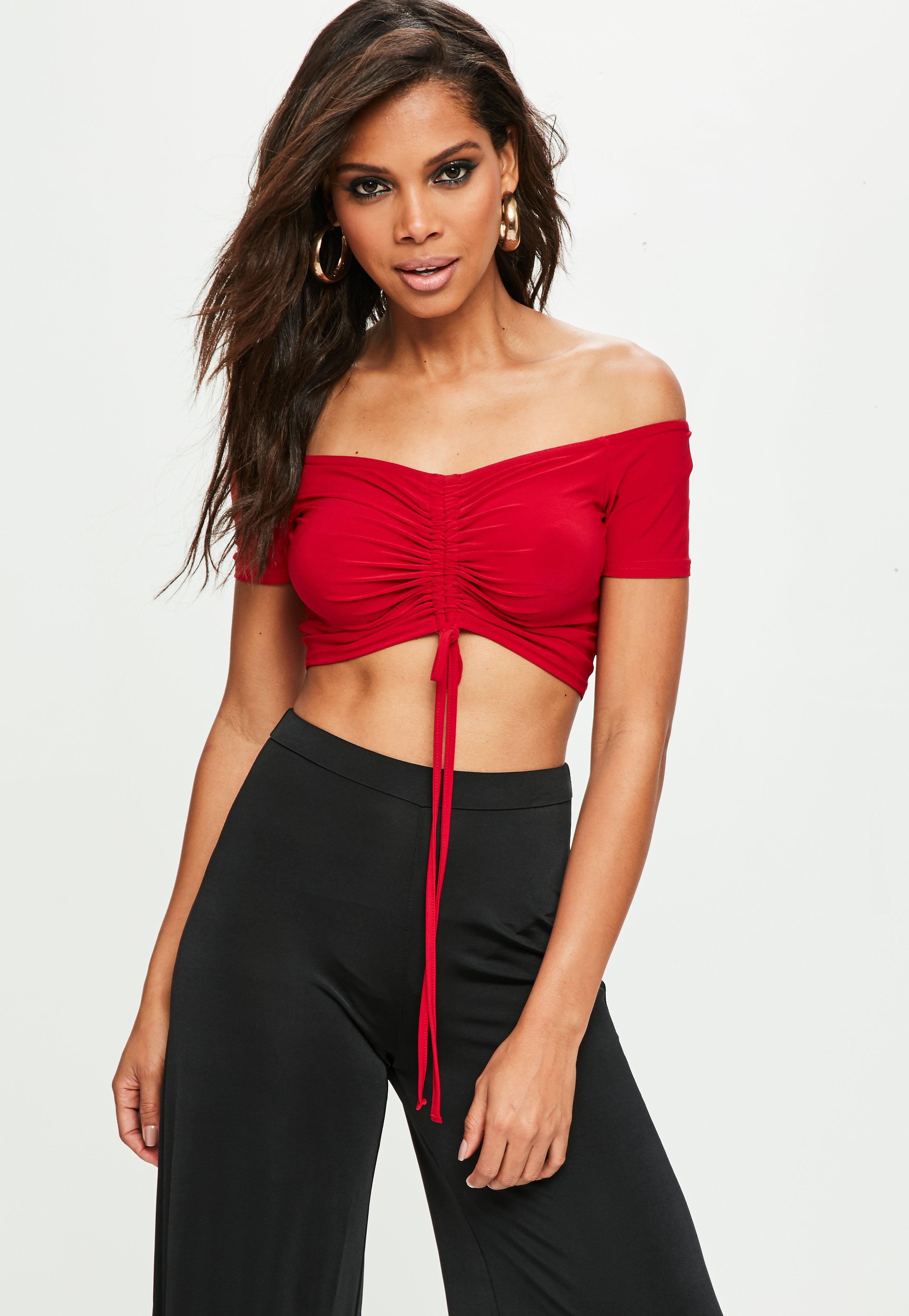 Red ruched crop top Outlet