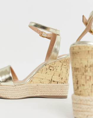 New look gold wedges Outlet, Gold Espadrille Trim 2 Part Cork Wedges Outlet