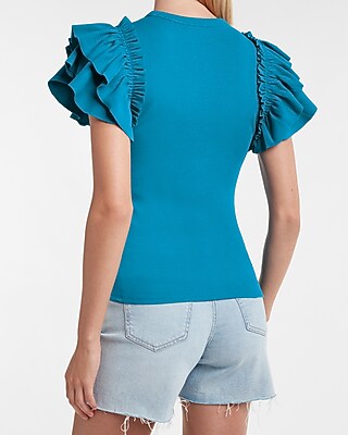 - Ribbed ruffle sleeve top sale online