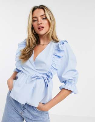 Baby blue ruffle top Outlet
