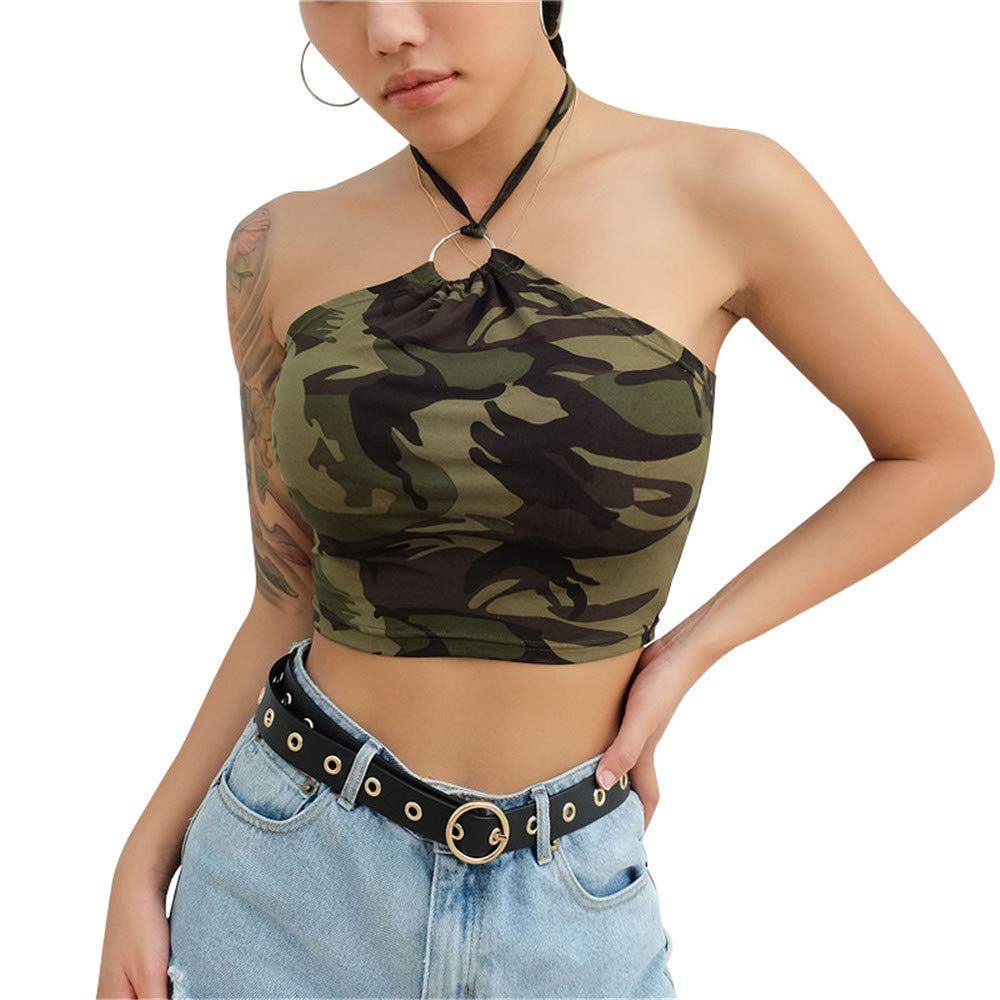 Green camo crop top Outlet, Buy N Women Halter Camo Tank Tops Tees Outlet