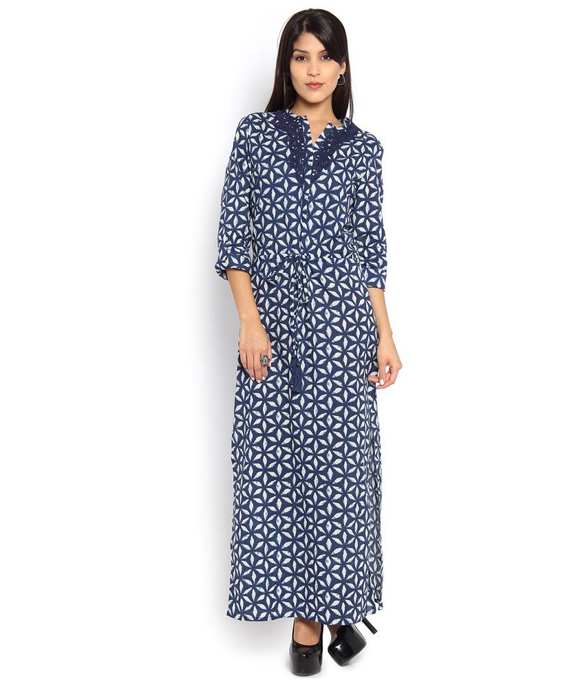 Cotton maxi online india Outlet, Vishudh Navy Cotton Maxi Dress - Buy Outlet