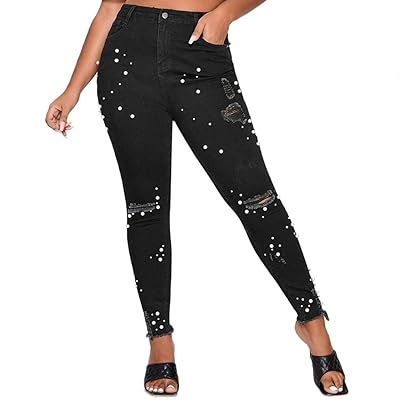 Black ripped stretch skinny jeans womens Outlet, High Waist Push Up Denim Jeans Women Outlet