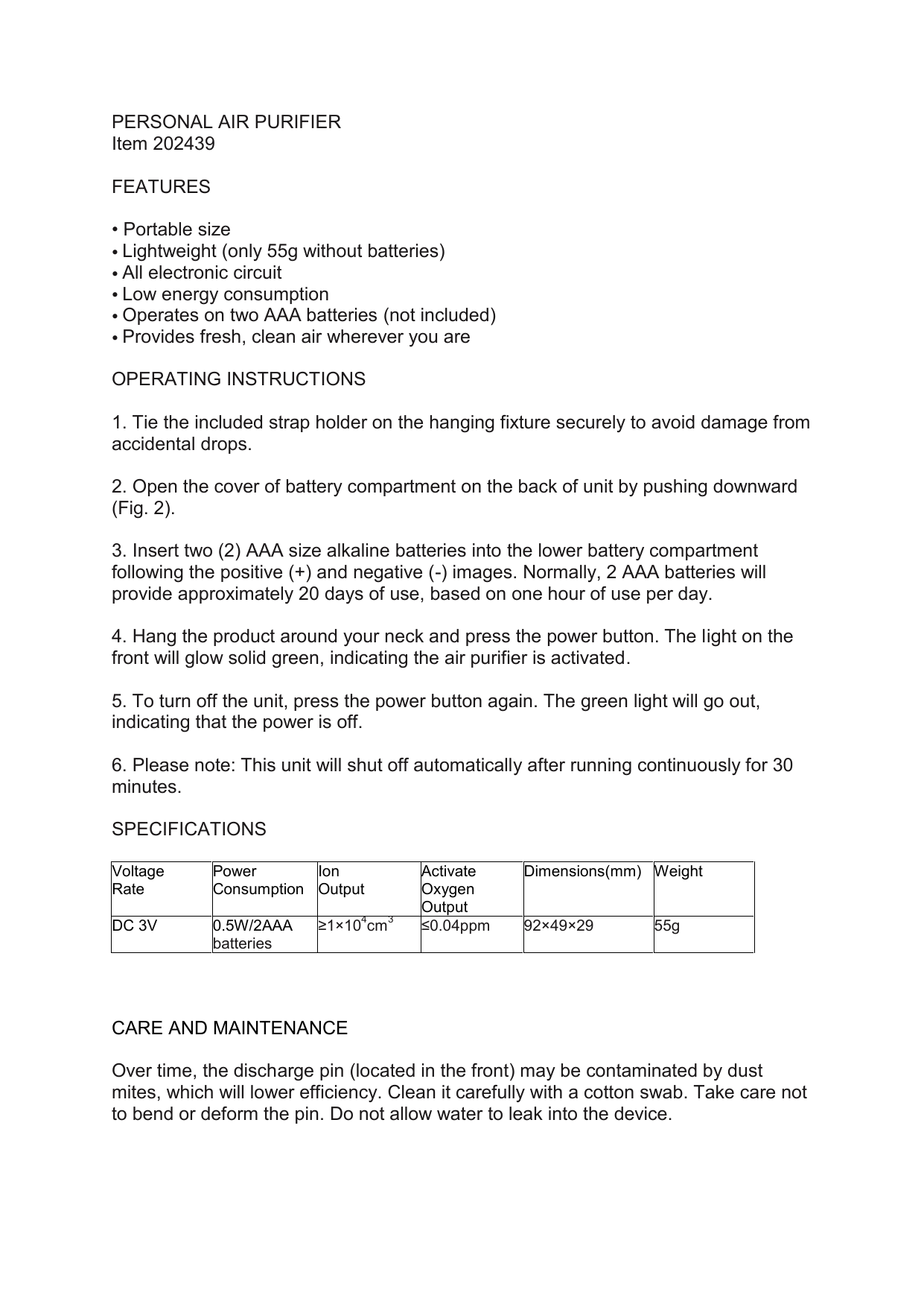 - Sharper image portable air purifier manual sold