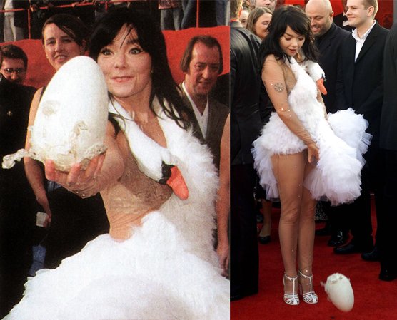 Bjork lays an egg Outlet, Björk Swan Dress Oscars – Remember When Outlet