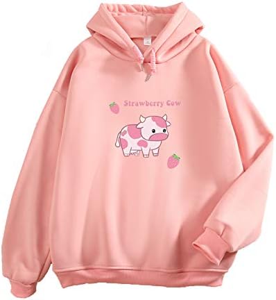 Pink cow print hoodie Outlet, Pullover Sweatshirts for Women Cute Outlet
