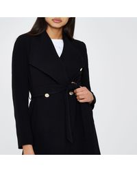 - Cheap Black belted button detail coat river island