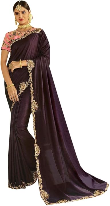 Plain saree with heavy blouse amazon Outlet, Indian Designer Collection Plain Sarees Outlet