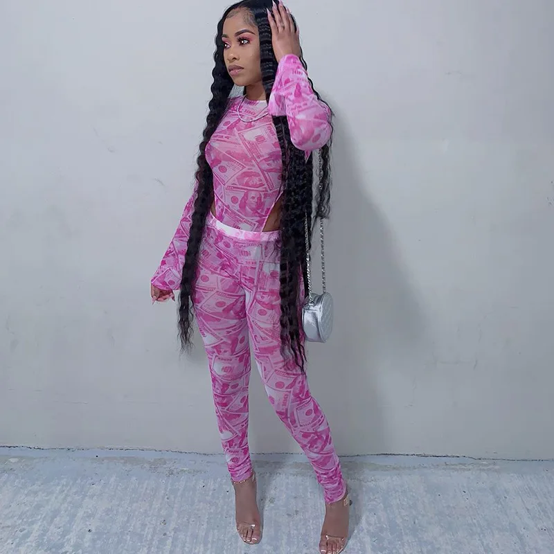 Pink money outfit Outlet, 2021 ANJAMANOR Pink Money Print Sheer Outlet