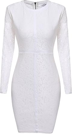 White long sleeve pencil dress Outlet, Women bodycon dress Outlet