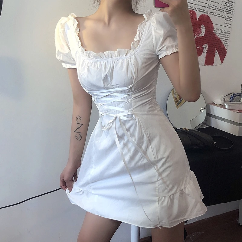- Klalien fashion elegant bow white female mini dress summer party birthday festival cute sexy french romantic silk dress women clearance