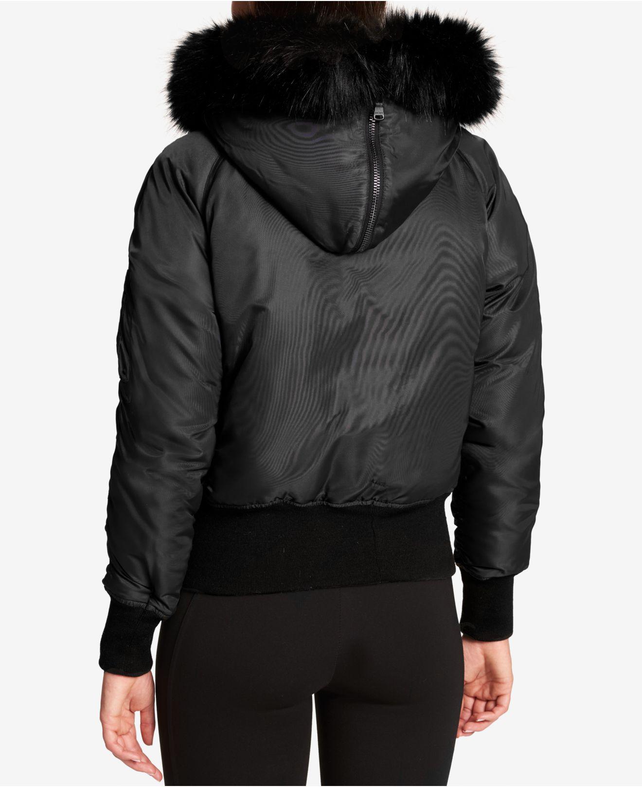 - Faux fur down bomber jacket sale online