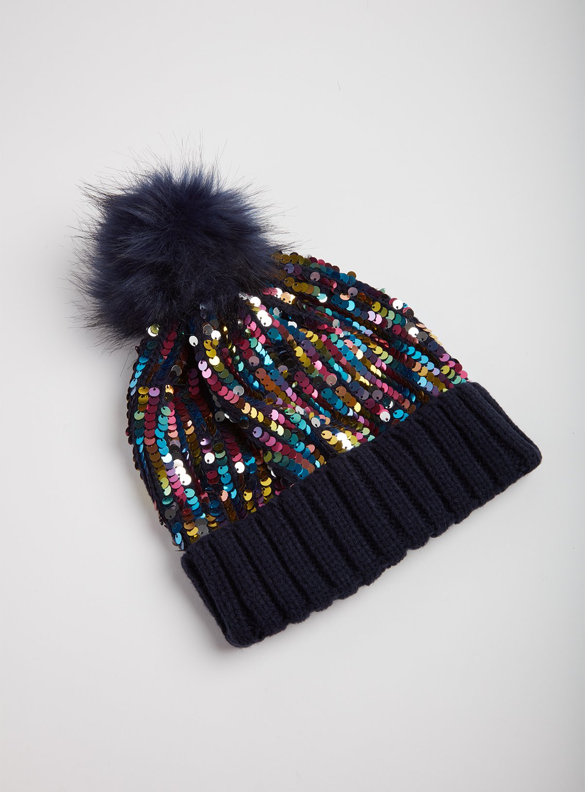 Sequin wool hat Outlet, Knit beanie with flowers and sequins Outlet
