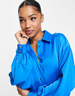Satin shirt blue Outlet, New Look Oversized Satin Shirt Dress in Blue Outlet