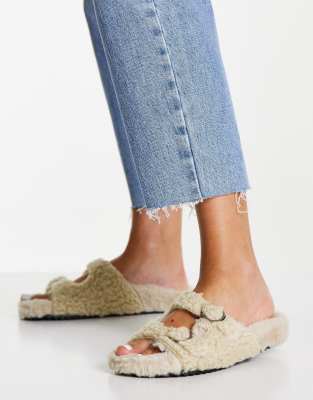 Slippers topshop Outlet, Topshop borg buckle slider slippers in Outlet