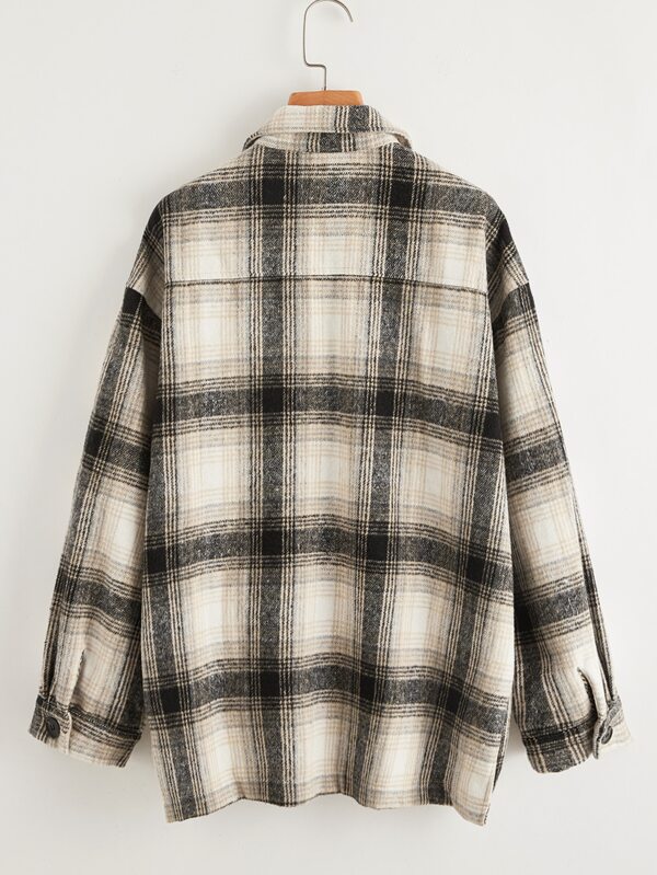 - Flap pocket front drop shoulder plaid coat