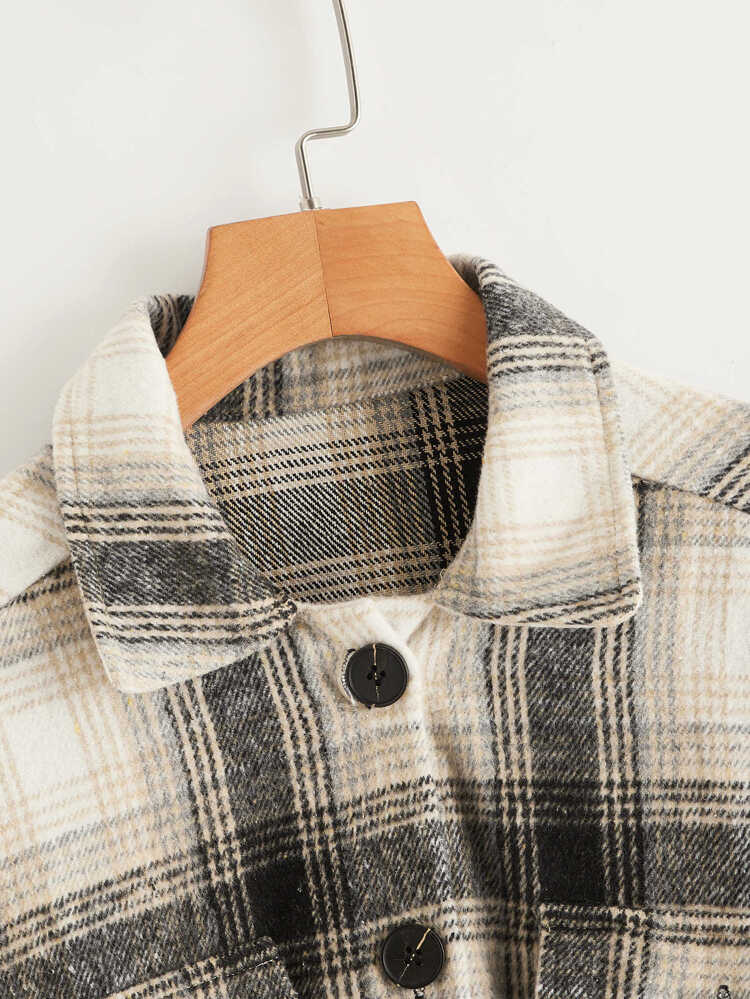 - Flap pocket front drop shoulder plaid coat outlet