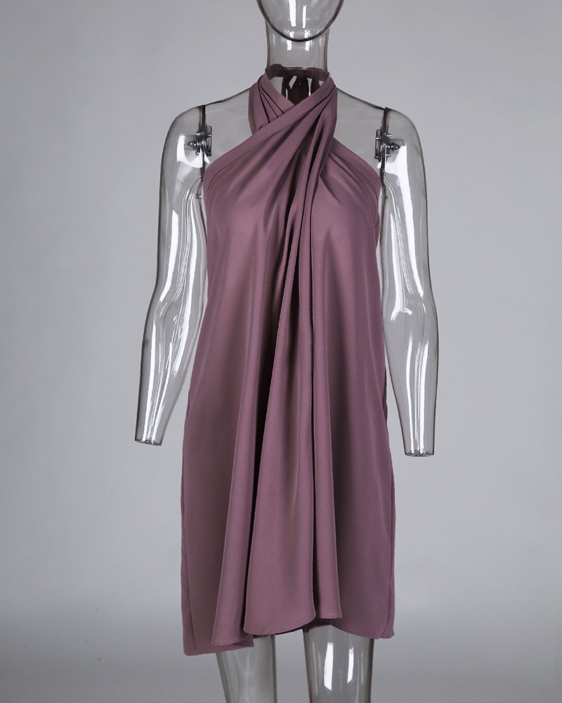 - Halter sleeveless ruched design dress sale
