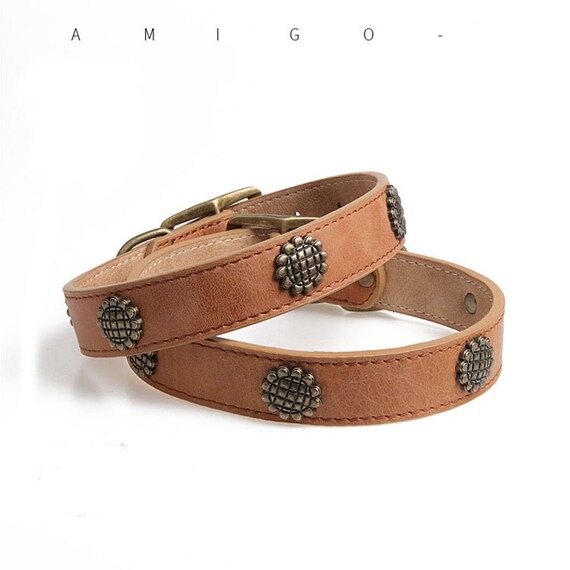 Cowhide dog collar Outlet, Brown Top Layer Of Cowhide Dog Collar Outlet