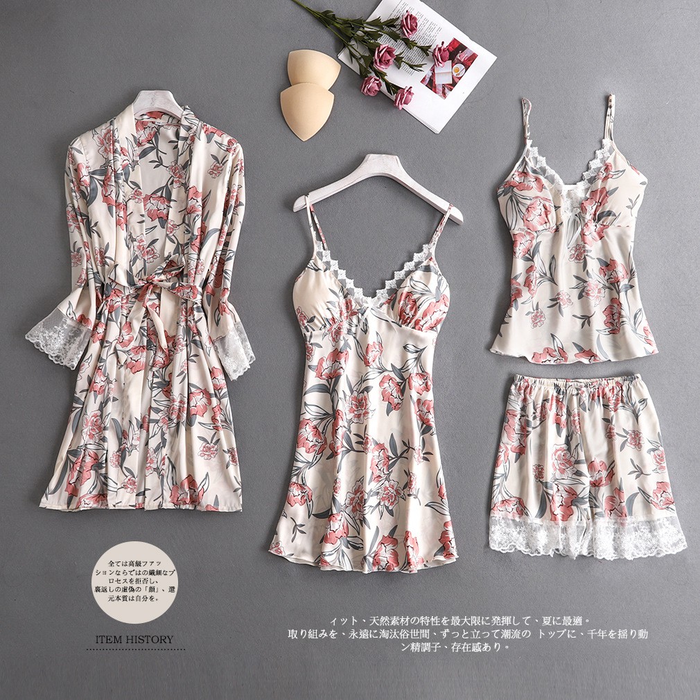 Pijama cetim 4 peças Outlet, Conjunto Pijama Cetim 4 Peças – May's Intimates Outlet