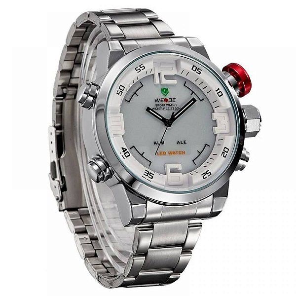 Relogio weide wh 2309 Outlet, Weide WH-2309 Waterproof Men \u0026 # 39; s relógio de pulso Dual Time Sports Digital LED Quartz com Data / semana / Alarme (Silver + White) nas americanas Outlet