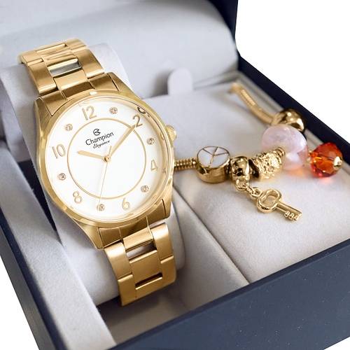 Relogio feminino promoção Outlet, Relógio Champion Feminino Dourado Analógico CN25690W + Pulseira Berloques nas americanas Outlet