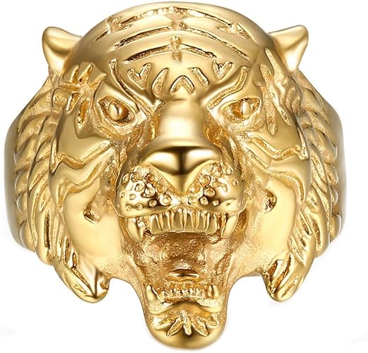 Bague tete de tigre Outlet, Bague homme acier inoxydable tête de tigre gueule ouverte originale Outlet