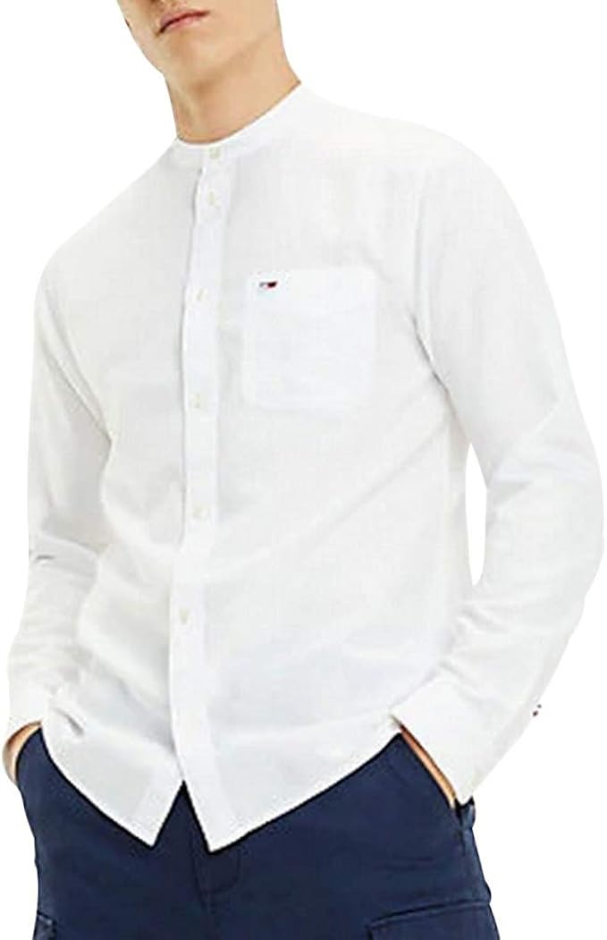 Chemise col mao homme tommy hilfiger Outlet, Tommy Hilfiger TJM Mao Linen Shirt Chemise Casual, Blanc Outlet