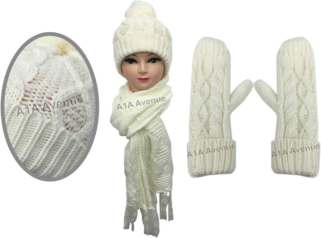 Cream hat and gloves Outlet, Knitted Fingerless Cable Knit Winter Outlet