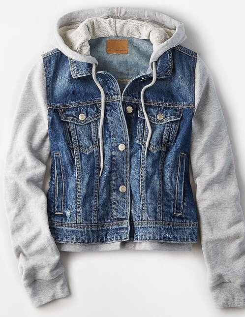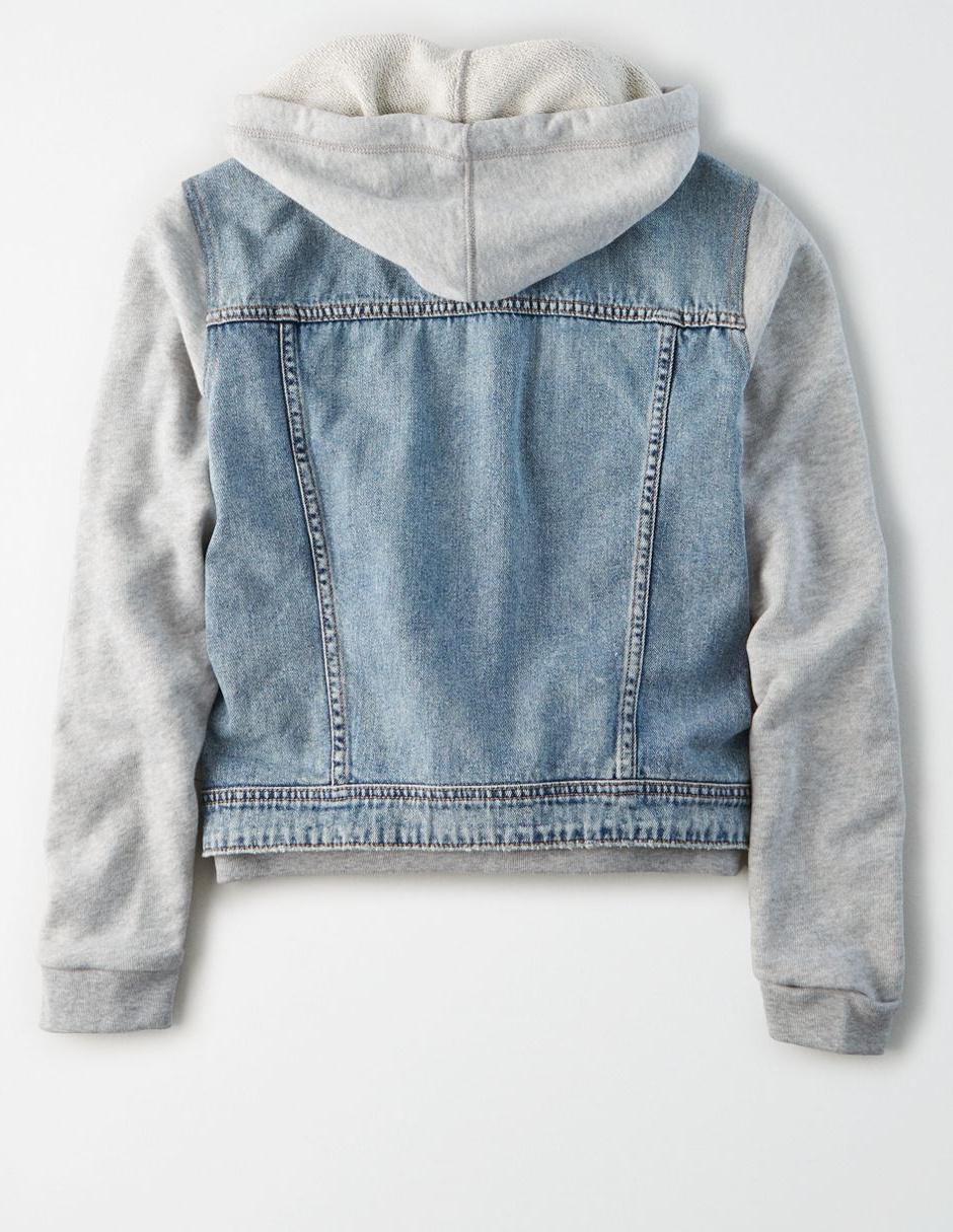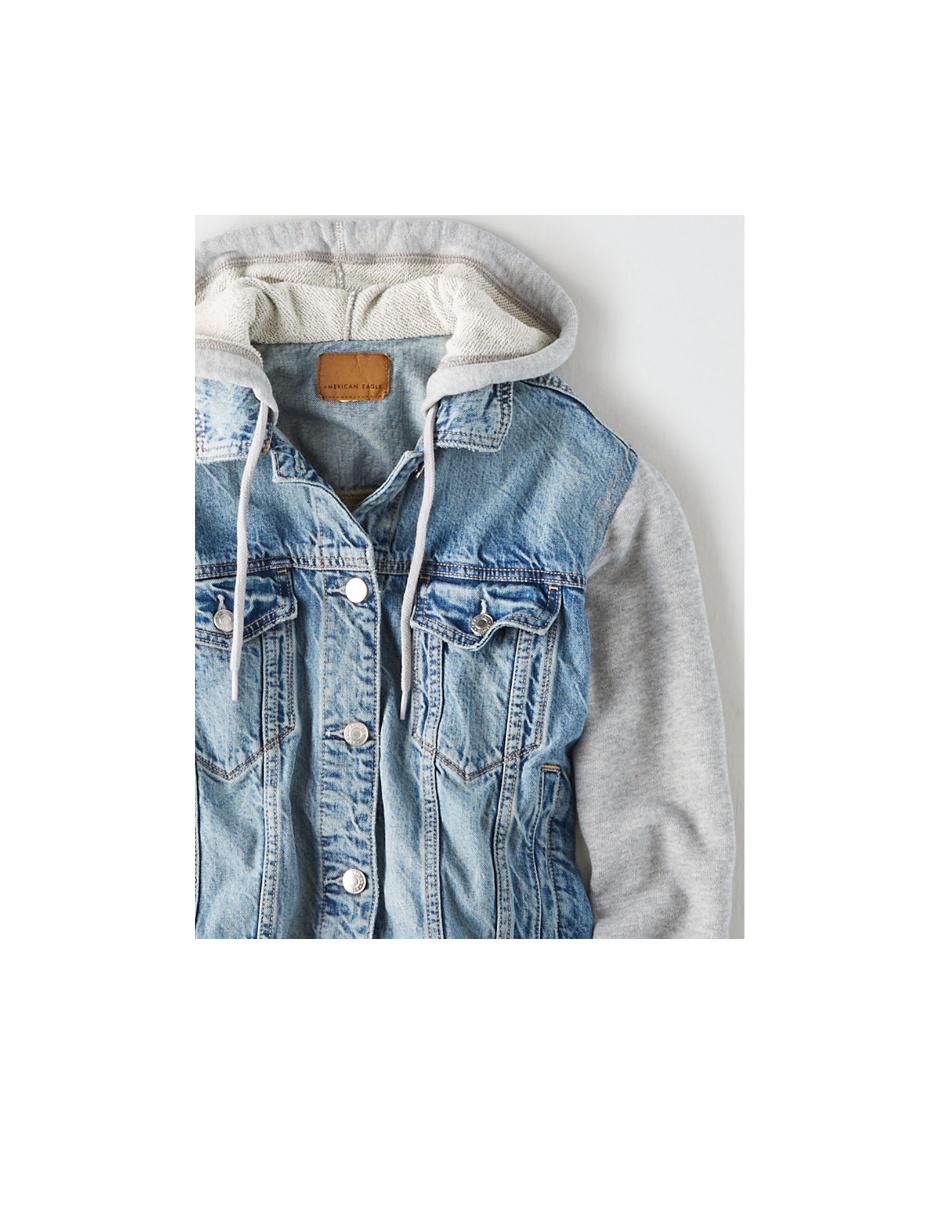 Chamarra american eagle azul medio denim con capucha Outlet