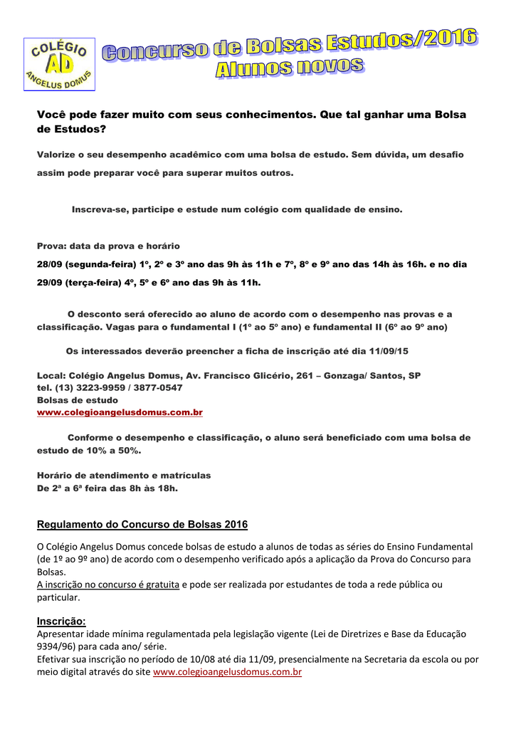 Bolsa de estudo 4 ano fundamental Outlet, Concurso de Bolsas 2017 – Colégio Branca Alves de Lima Outlet