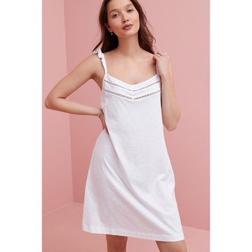 Nuisette blanche coton Outlet, Nuisette coton décolleté dentelle - Blancheporte Outlet