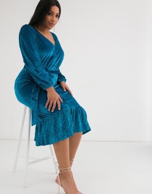 Robe turquoise asos Outlet, ASOS - Robe kimono mi-longue en velours avec décolleté plongeant et lien à nouer à la taille | ASOS Outlet