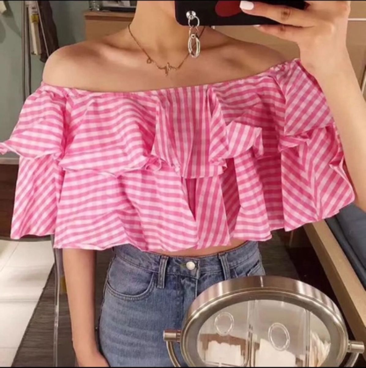 - Shopping Cropped babado tomara que caia